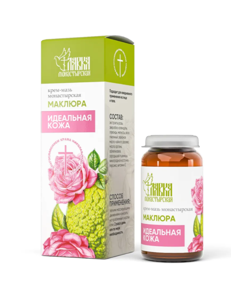 Мазь создана по рецептам монастырей на основе комплекса целебных растений, издревле применяемых при возрастных изменениях кожи, морщинах, растяжках, рубцах, сосудистой сеточке, пигментации, темных кругах под глазами, воспалениях, прыщах, угревой сыпи, раздражениях и сухости кожи.