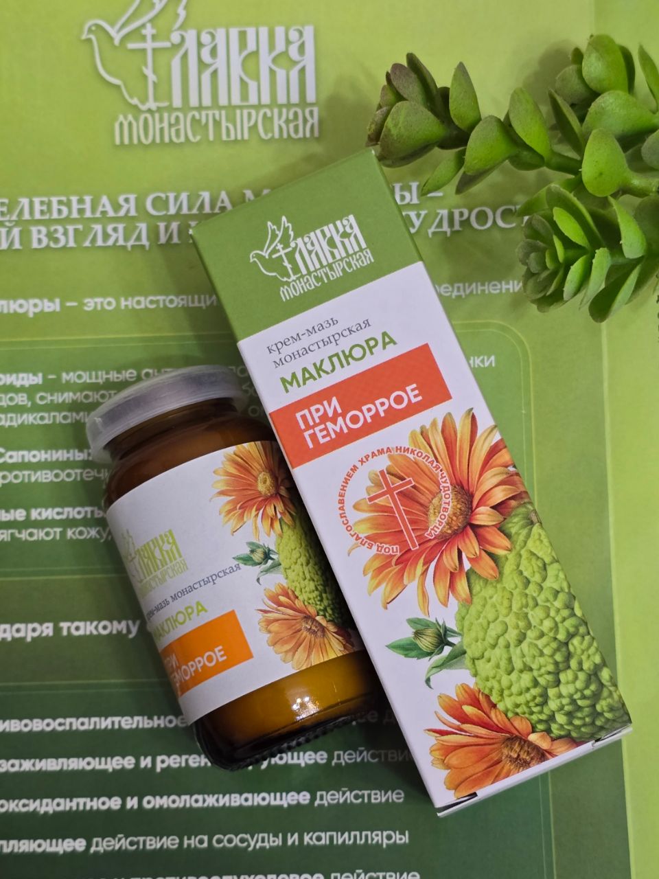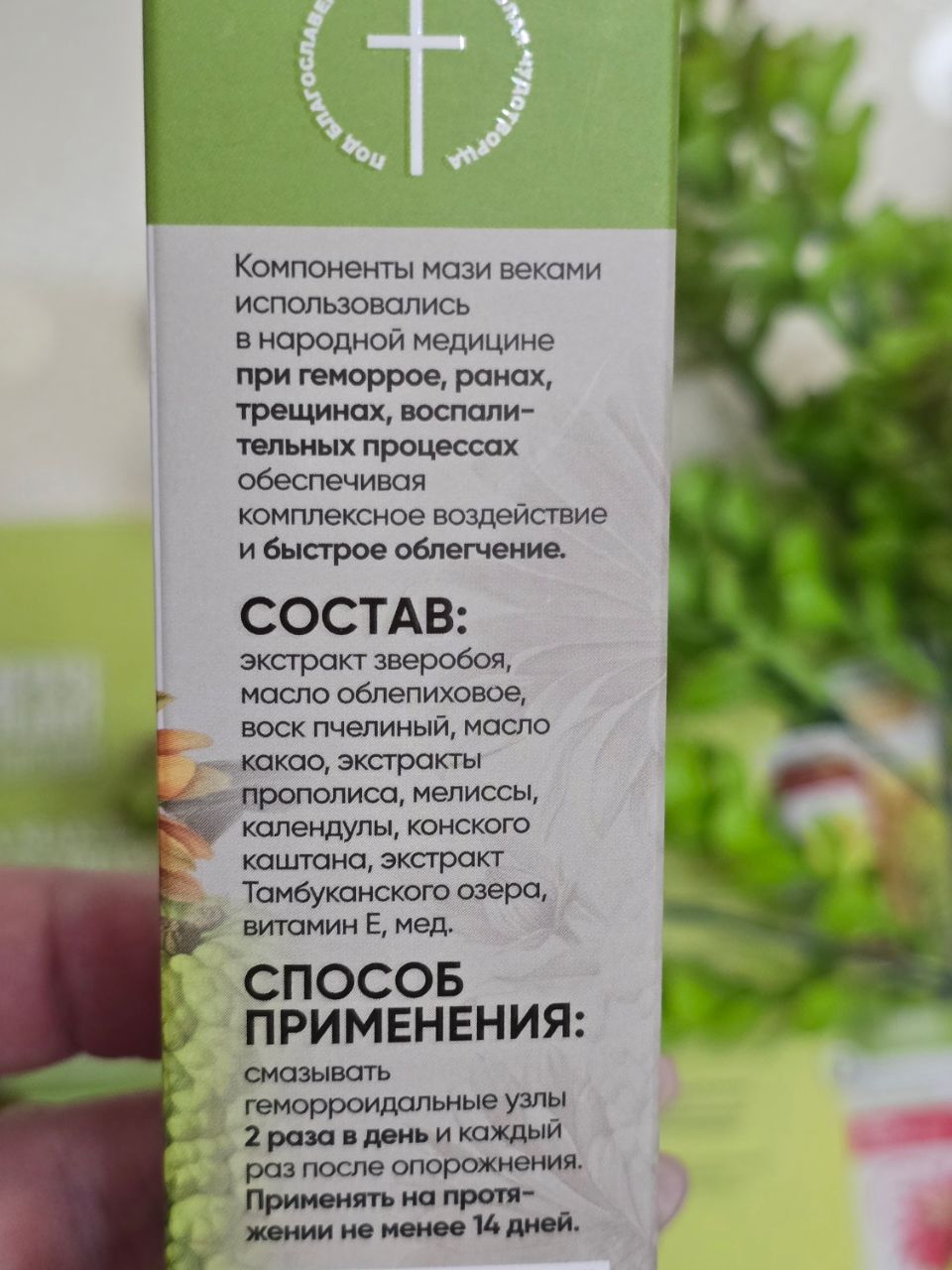 - Мазь создана по рецептам монастырей на основе комплекса целебных растений для облегчения симптомов геморроя.