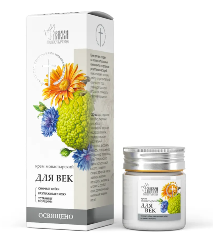 Крем для век создан на основе натуральных компонентов по древним рецептам монастырей, обеспечивает нежную заботу о чувствительной коже вокруг глаз, уменьшая признаки усталости, отечность и мелкие морщинки.