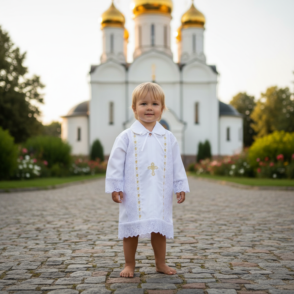 Представляем изысканную крестильную рубашку – символ чистоты и благословения для вашего ребенка. Эта модель, созданная с любовью и особым трепетом, станет идеальным нарядом как для церемонии в храме, так и для погружения в святую купель или освященных источников.