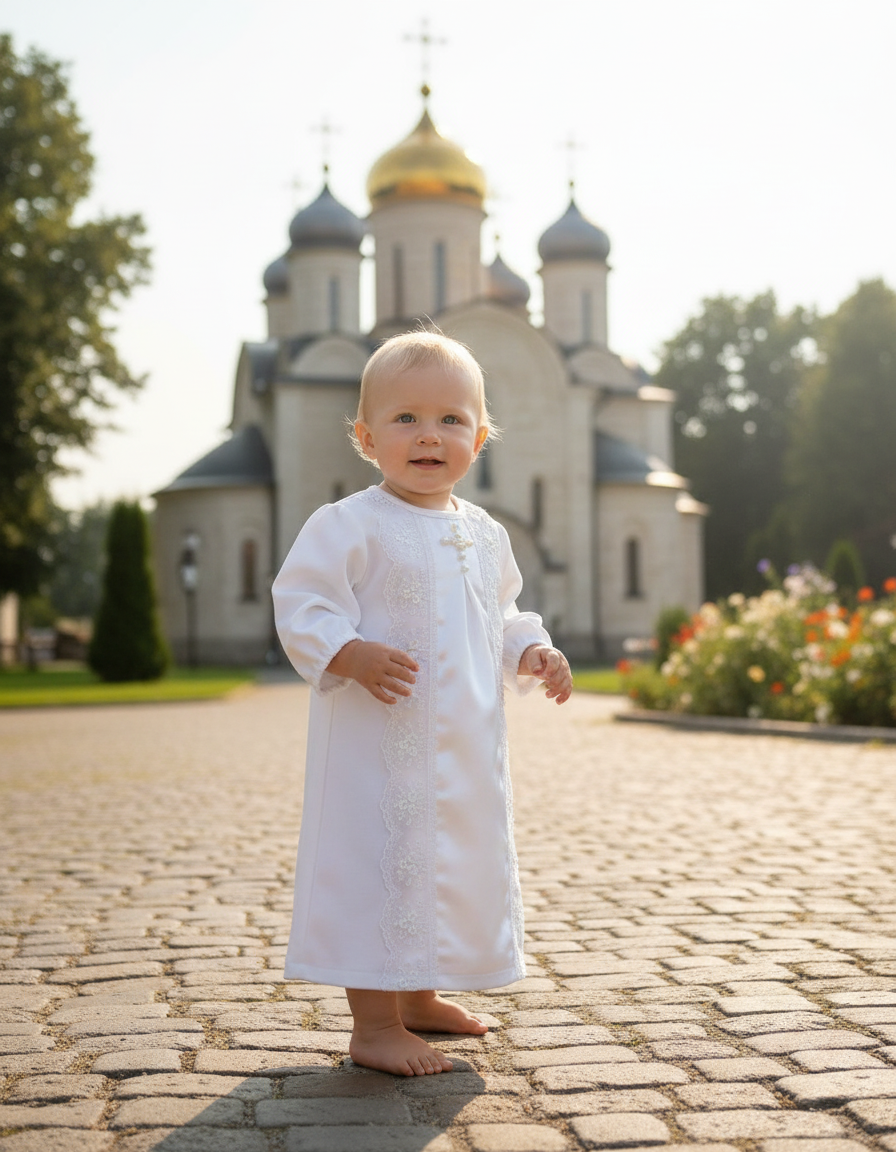 Приготовьтесь к самому светлому дню в жизни Вашего малыша с нашей изысканной крестильной рубашкой! Созданная с любовью и заботой, она станет идеальным нарядом для таинства Крещения.