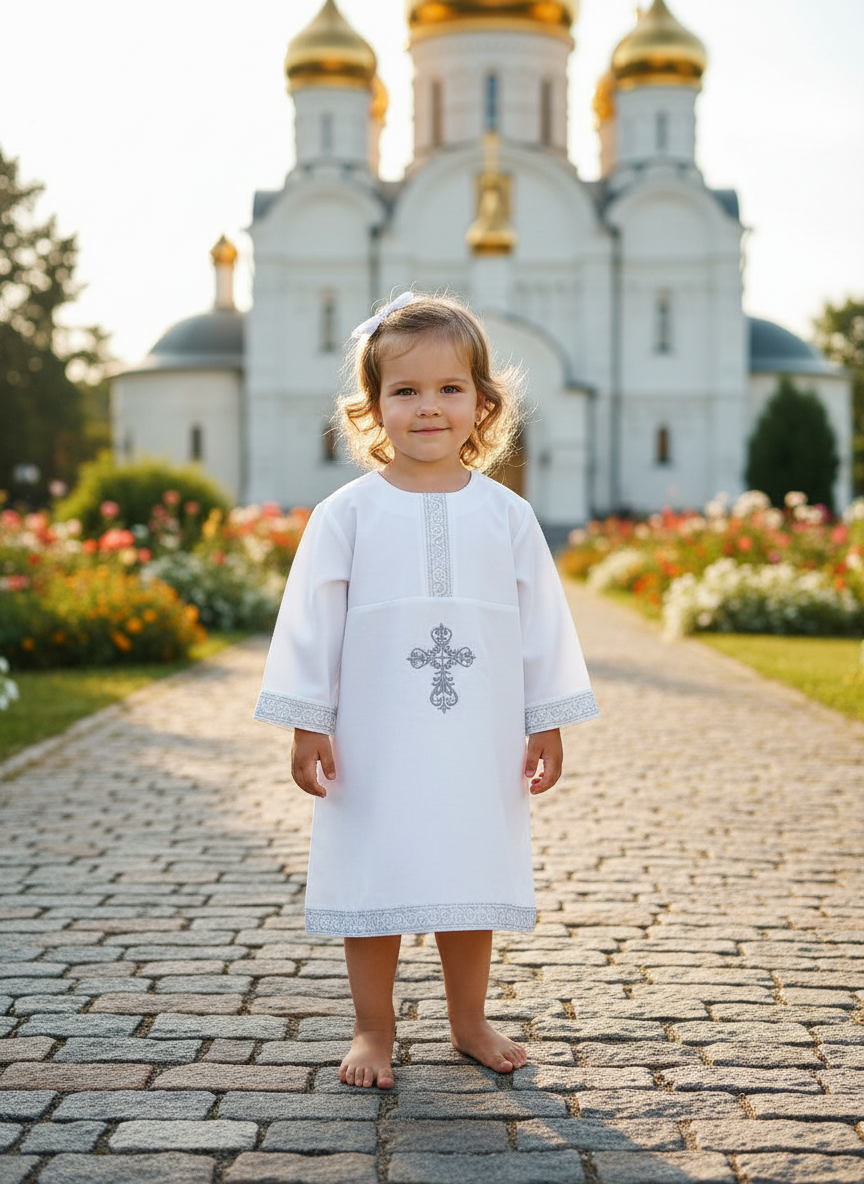 Позвольте вашему ребенку встретить один из самых светлых дней – Таинство Крещения – в рубашке, сотканной из нежности и благодати. Представляем крестильную рубашку, где традиция встречается с изысканным сиянием!